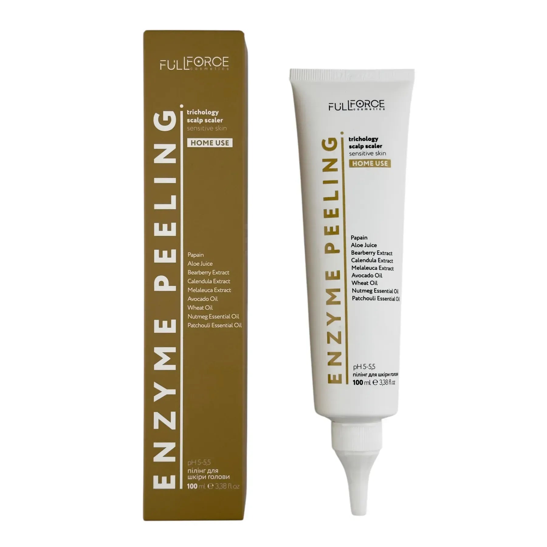Full Force Trichology Scalp Enzyme Scaler Home — ензимний пілінг для чутливої шкіри голови, що м’яко очищає від ороговілих клітин і залишків стайлінгу та допомагає відновити комфорт. Формула з папаїном, пантенолом та соком алое делікатно оновлює, заспокоює та підтримує баланс шкіри голови без агресивного скрабування. Підходить для чутливої шкіри голови, схильної до подразнення, сухості та дискомфорту.