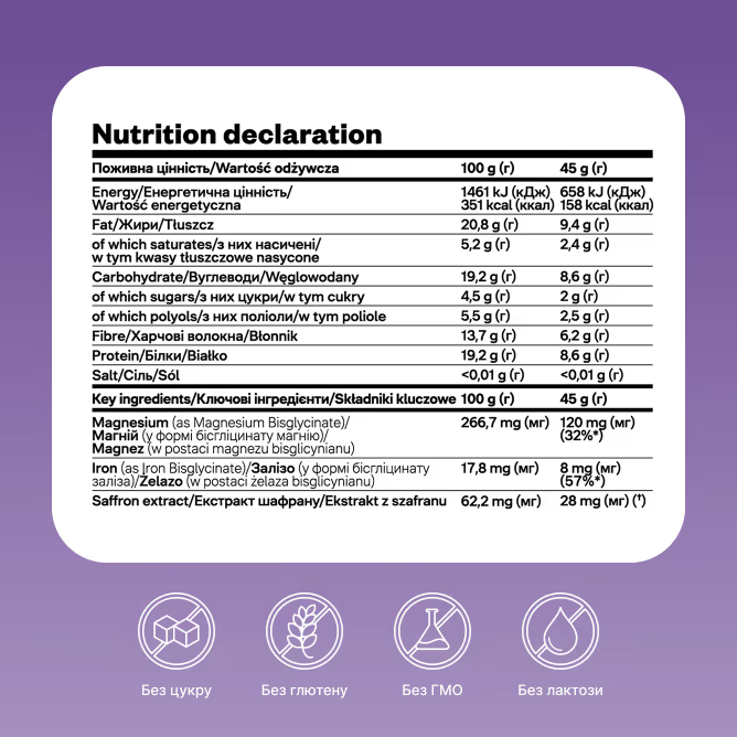 - Фрукти та натуральні екстракти — забезпечують енергією, м’яко стабілізують настрій та зменшують тягу до солодкого